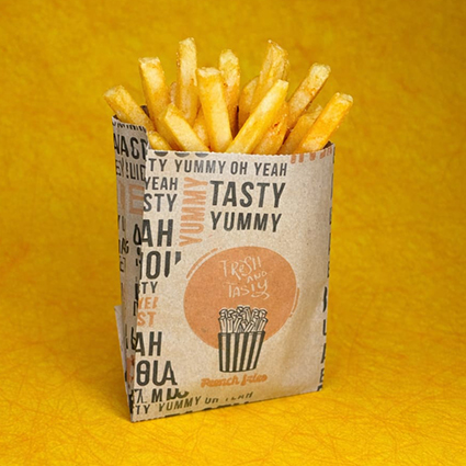 La pochette kraft Ecru ou kraft Blanc permet d’emballer et transporter de petites, moyennes et grandes portions de frites, potatoes, nuggets….